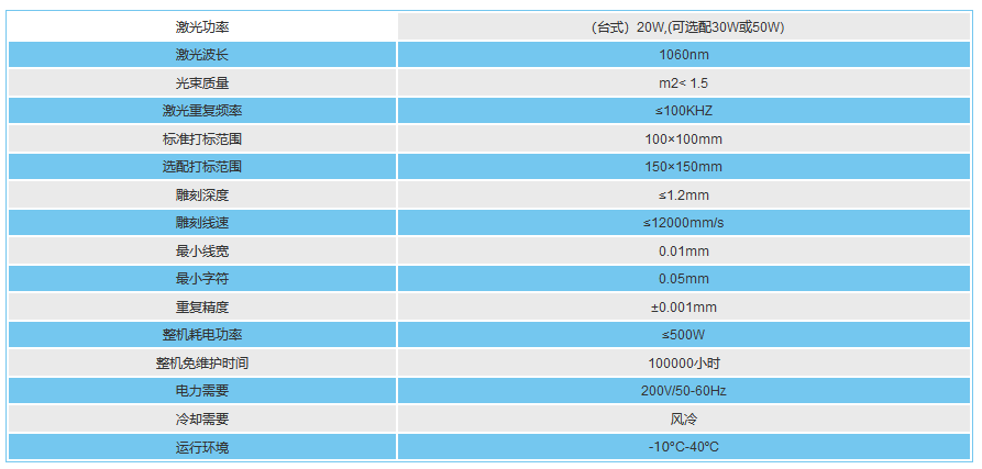 SC-Y- 20W光纤激光机技术参数: